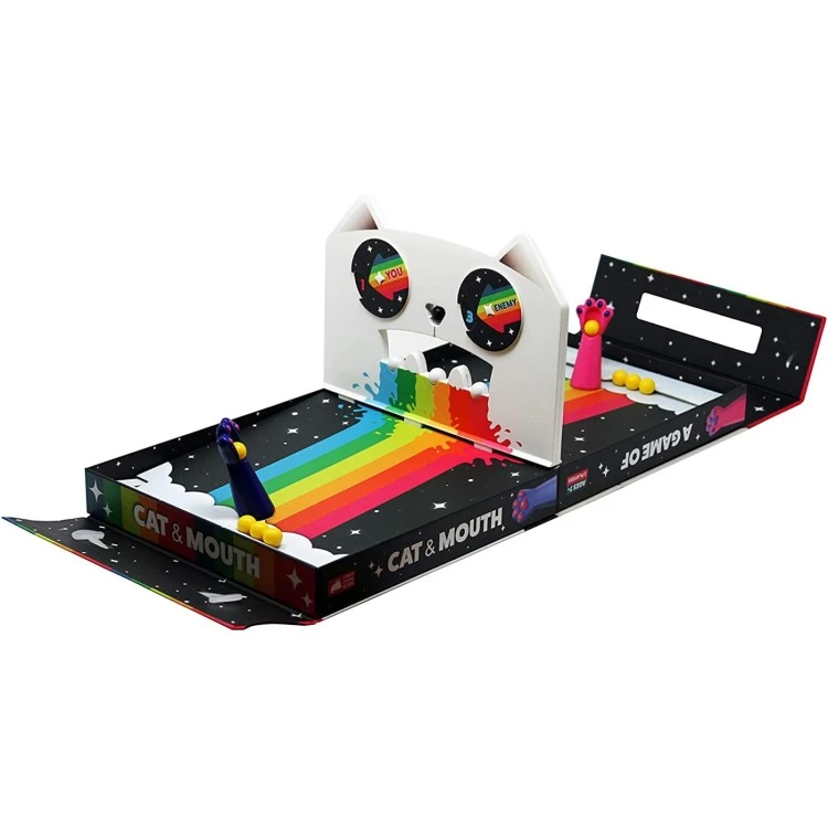 - The game features a Rainbow Ralphing “Cat Mouth” centerpiece and 6 optional wall bumpers (no judgment, we get it)