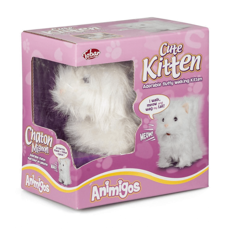 - Cat plush toy that walks along and makes a variety of adorable meows and mew sounds