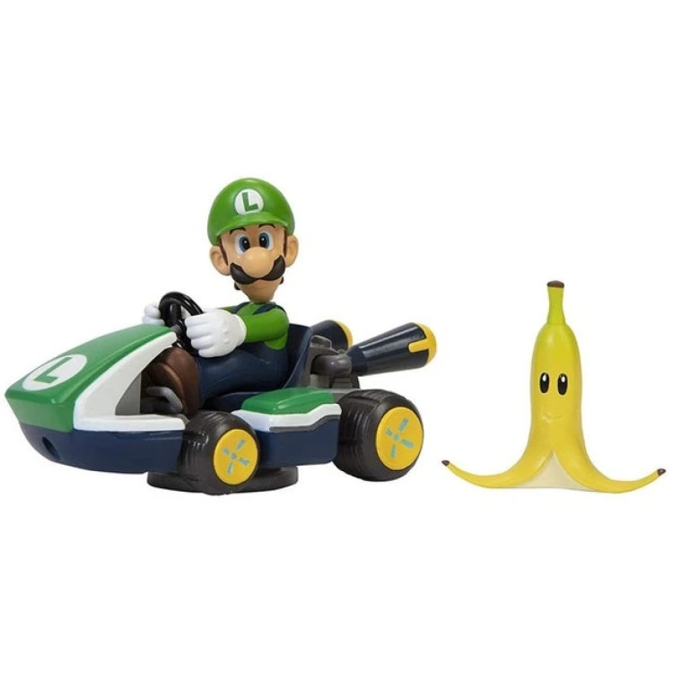 The Spin out Mariokart allows you to recreate your own race anywhere you want. Wind up the kart, press down, and watch out for the banana peel! Front and back triggers activate spin out feature 360 spins! Includes Luigi kart and banana peel accessory. Wind up and GO!